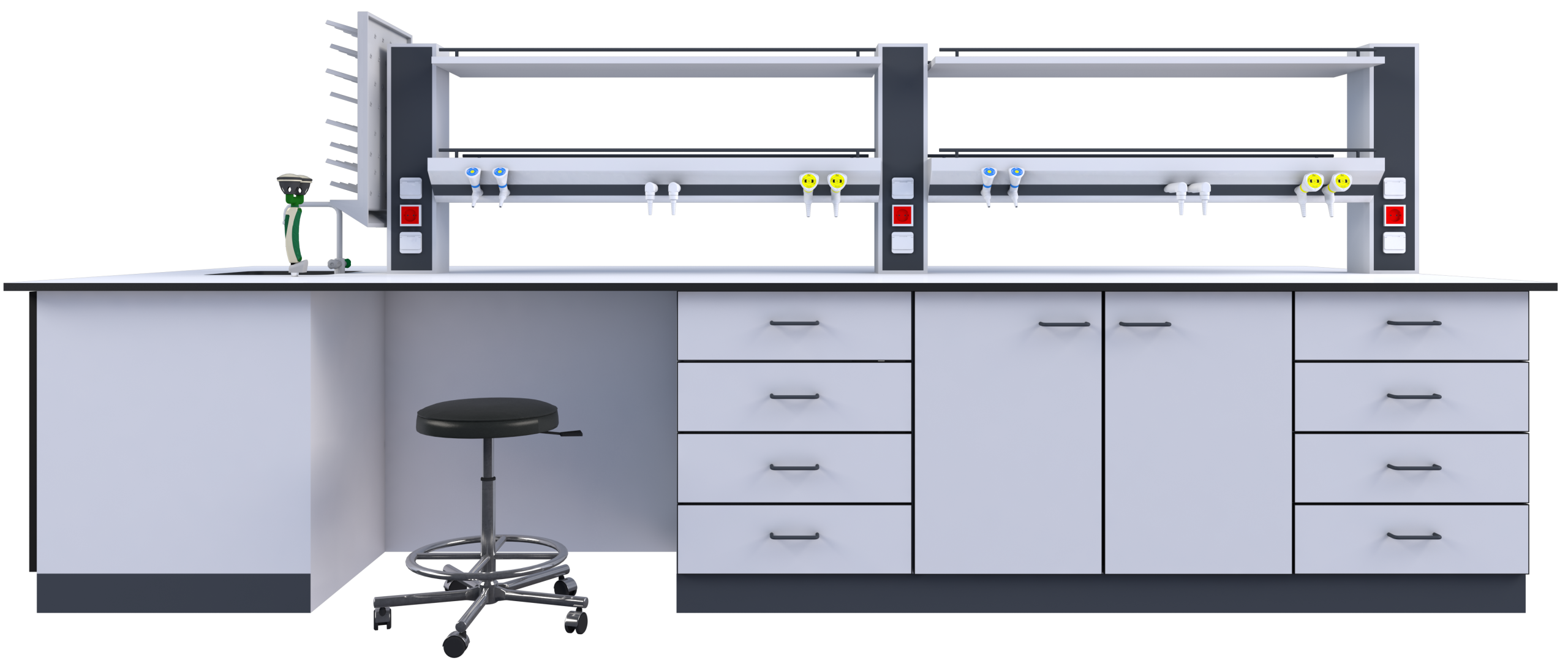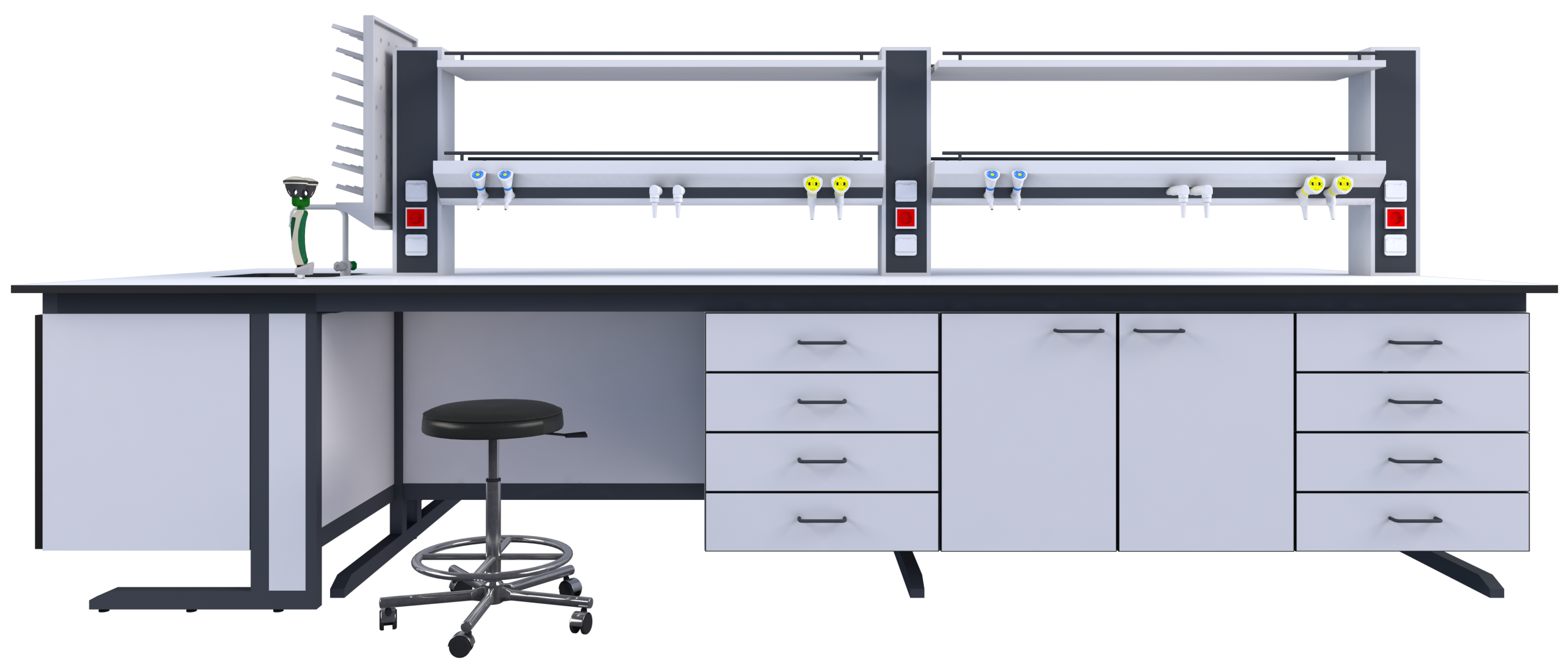 Tezgah altı dolabı; laboratuvarlarda çalışma alanını verimli kullanmak ve sık kullanılan malzemeleri düzenli biçimde saklamak amacıyla tasarlanmış depolama ünitesidir.